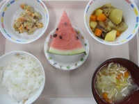 肉じゃが(カレー味) 卯の花 みそ汁(キャベツ・あげ) ごはん すいか |