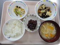 じゃが芋のひじき煮 小松菜サラダ みそ汁(キャベツ、あげ) ごはん ぶどう |