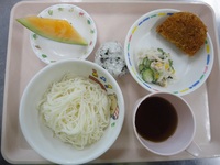 コロッケ ツナサラダ 流しそうめん わかめおにぎり メロン |