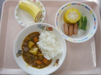 ウインナーソテー ゆでとうもろこし きゅうり カレーシチュー ごはん バナナ |