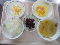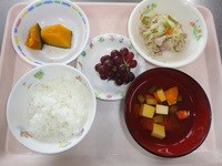 豚肉とキャベツのみそ炒め かぼちゃ煮 卵豆腐の冷やし汁 ごはん ぶどう |