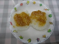 餃子のあんかけ 冷ばん三すう 中華風スープ ごはん オレンジ |
