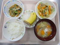 豚肉のカレー炒め ほうれん草の納豆和え みそ汁(じゃが芋、玉ねぎ) ごはん バナナ |