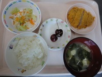 とんかつ キャベツのゆかり和え みそ汁(えのき) ごはん アメリカンチェリー |