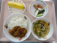 ウインナー きゅうりと長芋のさっぱり漬け オクラスープ ドライカレー バナナ |