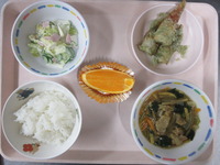 ちくわの磯辺揚げ ハムサラダ カレ-うどん ごはん オレンジ |