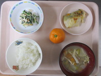 白身魚のクリ-ムコ-ン焼き ほうれん草の白和え 豚汁(さつまいも) ごはん みかん |