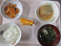 さばのおろし煮 にんじんのきんぴら すまし汁(小松菜) ごはん オレンジ |