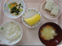 豚肉のもち米蒸し 小松菜とじゃこの和え物 みそ汁 ごはん バナナ |