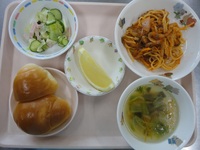 ナポリタン コールスローサラダ わかめスープ ロールパン グレープフルーツ |