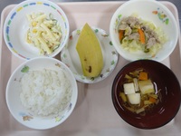 豚肉とキャベツのみそ炒め マカロニサラダ 白はんぺんのすまし汁 ごはん バナナ |