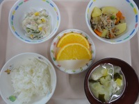 肉じゃが ツナサラダ みそ汁(わかめ) ごはん オレンジ |
