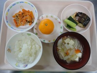 焼き鯖 スティックきゅうり にんじんのきんぴら 豚汁 ごはん みかん |