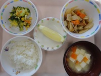 筑前煮 ブロッコリーとコーンのおかか和え みそ汁 ごはん グレープフルーツ |