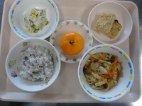 松風焼き ツナサラダ 煮込みうどん ゆかりごはん みかん |