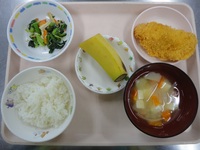 白身フライ 小松菜とじゃこの和え物 みそ汁 ごはん バナナ |