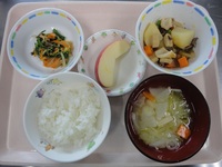 牛肉とじゃが芋の煮物 三色ナムル みそ汁 ごはん りんご |