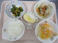 里芋と豚肉の煮物 ほうれん草のごま和え 洋風にゅう麺 ごはん りんご |