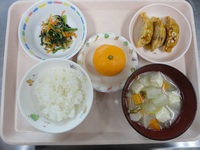 餃子のあんかけ 三色ナムル 豚汁 ごはん みかん |