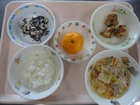鶏肉のごまみそ焼き ひじきサラダ ビーフンスープ ごはん みかん |