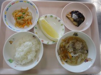 焼き鯖 切干大根の含め煮 肉団子スープ ごはん グレープフルーツ |