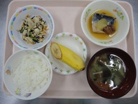 鯖の梅干し煮 炒り豆腐 冷やみそ汁 ごはん バナナ |