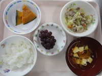 豚肉とキャベツのみそ炒め かぼちゃ煮 卵豆腐の冷やし汁 ごはん ぶどう |