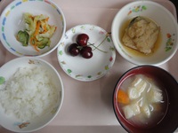鯖のおろし煮 ごま酢キャベツ みそ汁(麩) ごはん アメリカンチェリー |