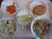 野菜コロッケ にんじんの和風サラダ 肉団子スープ 青菜チャーハン グレープフルーツ |
