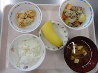 肉じゃが 卯の花 卵豆腐の冷やし汁 ごはん バナナ |