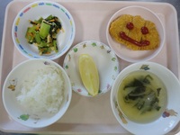 焼き鯖 五目和え みそ汁(じゃが芋、豆腐) ごはん バナナ |