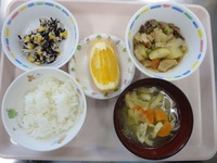 牛肉とじゃが芋の煮物 切干大根とひじきのサラダ みそ汁(キャベツ、あげ) ごはん 八朔 |
