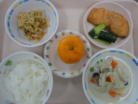 焼き鮭 スティックきゅうり 切干大根の含め煮 さつま芋のシチュー ごはん みかん |