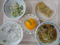 松風焼き ツナサラダ 煮込みうどん ゆかりごはん みかん |