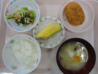 コロッケ 小松菜とじゃこの和え物 みそ汁(わかめ) ごはん バナナ |