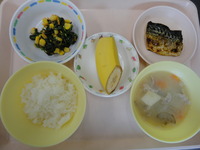 焼き鯖 青菜とコーンのごま和え 豚汁 ごはん バナナ |