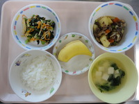 牛肉とじゃが芋の煮物 小松菜とじゃこの和え物 みそ汁(えのき) ごはん バナナ |