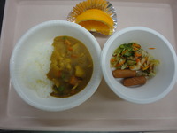 ウインナーソテー キャベツのおかか和え カレーシチュー ごはん オレンジ |