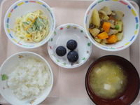 牛肉とじゃが芋の煮物 スパゲティサラダ みそ汁(豆腐) ごはん 巨峰 |