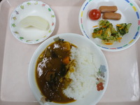 ウインナーソテー キャベツのおかか和え 夏野菜カレー ごはん 梨 |