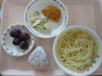 野菜コロッケ ハムサラダ 流しラーメン ゆかりおにぎり 巨峰 |