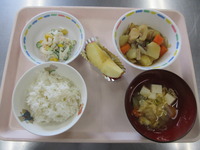 牛肉とじゃが芋の煮物 ツナサラダ かき玉汁 麦ごはん りんご |