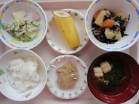 じゃが芋のひじき煮 ハムサラダ 麩のすまし汁 ごはん(納豆) バナナ |