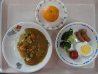 ウインナーソテー ミニサラダ カレーシチュー ごはん みかん |