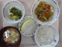 焼きそば ブロッコリーのおかか和え じゃが芋と玉ねぎの味噌汁 ごはん りんご |
