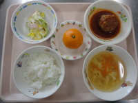 ハンバーグソース煮 白菜サラダ コーン卵スープ ごはん みかん |