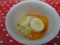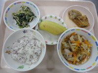 | フルーツポンチ | がんもどきの煮付け ほうれん草ともやしのごま和え 煮込みうどん ゆかりごはん バナナ |