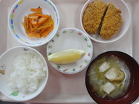 ミンチカツ にんじんの和風サラダ 味噌汁(厚揚げ) ごはん グレープフルーツ |