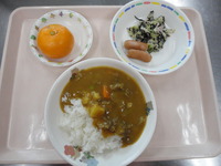 ウインナーソテー ひじきサラダ カレーシチュー ごはん みかん |