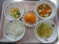 麻婆豆腐 小松菜サラダ 白菜と春雨のスープ ごはん みかん |
